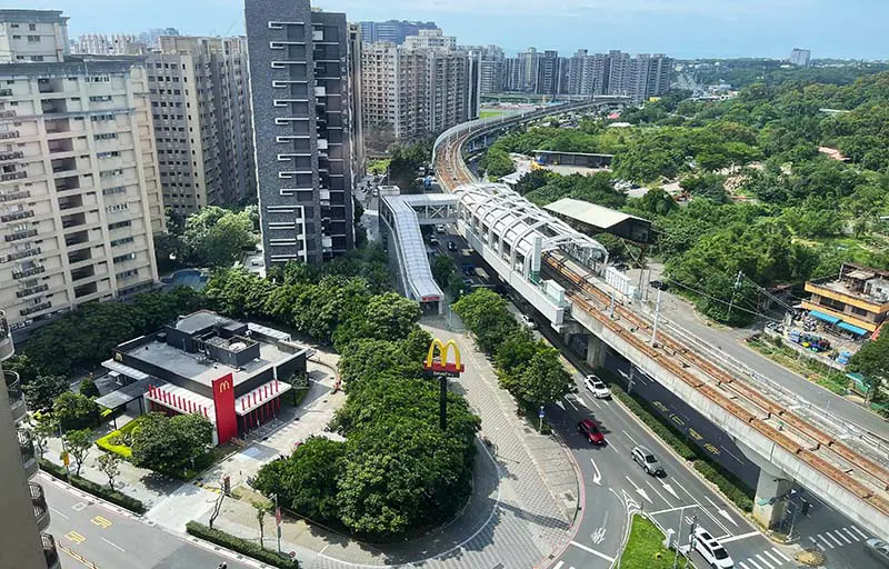 怎麼說呢,屋主平常喜歡小酌、也愛喝咖啡,夫妻倆也會一起吃飯、談心,試想我們去餐廳是不是也會想選靠窗的位置?那面對輕軌、車流、人來人往的窗,還有那遠方的海平面,這不就是最棒的城市景觀嗎?加上高吧桌與貓跳台,這裡就變成與貓咪一起放鬆、看風景的小天地。