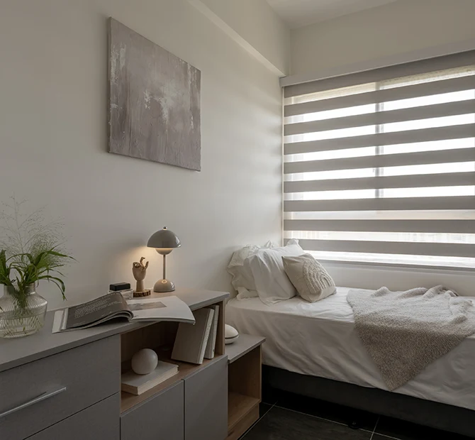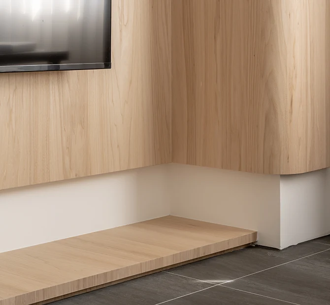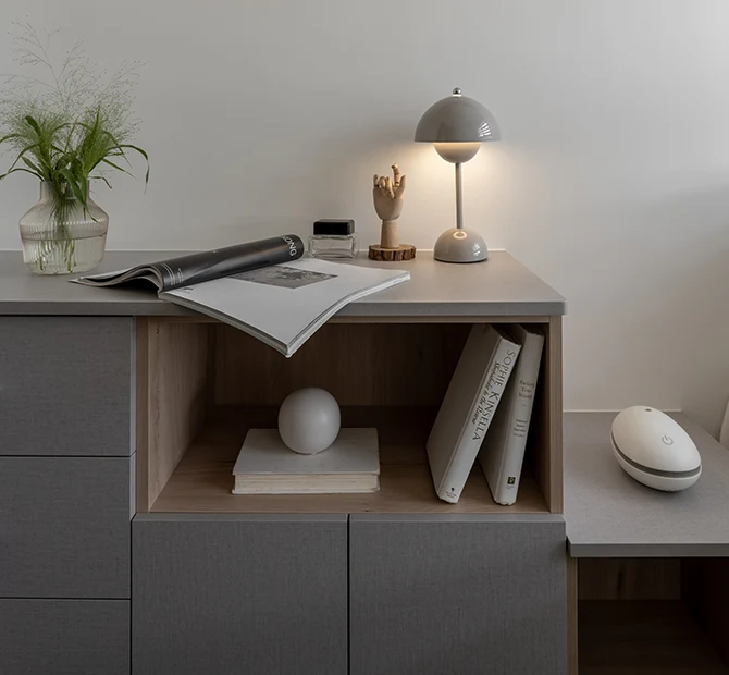 為熱愛清晨運動的屋主,我們設計不只是一道簡約的矮櫃,更是一天順暢的開始。這道簡約的矮櫃,整合了運動衣物與娛樂功能的收納,讓清晨起床時衣物能觸手可及,無需翻找。這就是精準設計的體貼,我們將你的生活習慣,紀錄並寫進家的設計裡。而為未來預留的電視與遊樂器空間,則讓這個角落能隨著主人的心境,隨時切換模式。